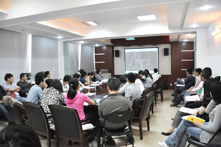培訓過程中,董工詳盡的介紹了歐版顎式破碎機與普通顎式破碎機的區(qū)別與聯(lián)系,并講述了歐版顎式破碎機的適用領域和特別性能;突出講解了歐版顎破的工作原理及其基本構架。每一位同事都認真聽著講解,對重點地方都做著筆記。培訓最后階段,董工針對大家提出的實際問題一一作答。